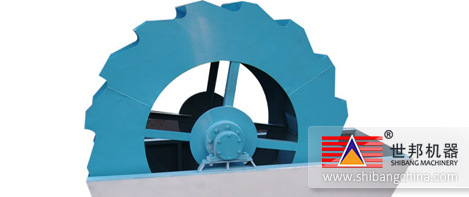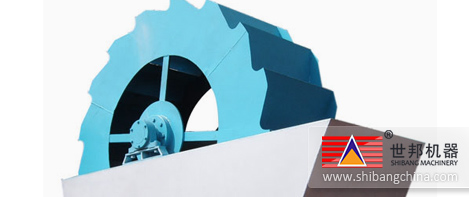 工作(zuo)時,電機通過三角(jiao)帶(dai)(dai)(dai)、減(jian)速機、齒輪減(jian)速后帶(dai)(dai)(dai)動(dong)葉輪緩(huan)慢轉動(dong),砂(sha)(sha)石(shi)有給料槽進入(ru)洗槽中,在葉輪的(de)帶(dai)(dai)(dai)動(dong)下(xia)翻滾,并互(hu)相研磨(mo),除去覆(fu)蓋砂(sha)(sha)石(shi)表面的(de)雜質,同時破壞包覆(fu)砂(sha)(sha)粒(li)的(de)水汽(qi)層,以利(li)于脫水;同時加(jia)水,形(xing)成(cheng)強大(da)水流,及時將雜質及比重小的(de)異物帶(dai)(dai)(dai)走(zou),并從溢出(chu)口洗槽排出(chu),完(wan)(wan)成(cheng)清洗作(zuo)用。干凈(jing)的(de)砂(sha)(sha)石(shi)由(you)葉片帶(dai)(dai)(dai)走(zou),砂(sha)(sha)石(shi)從旋轉的(de)葉輪倒(dao)入(ru)出(chu)料槽,完(wan)(wan)成(cheng)砂(sha)(sha)石(shi)的(de)清洗作(zuo)用.